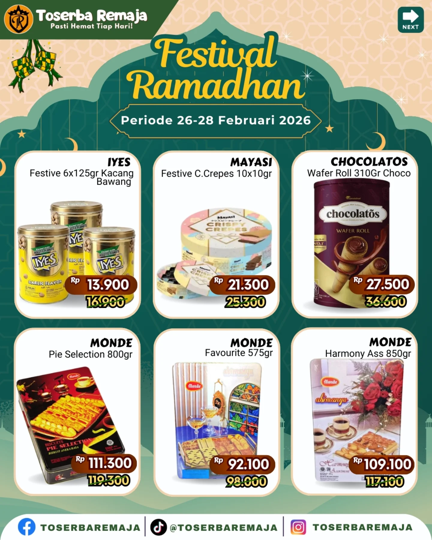 Untuk melihat semua detail harga dan produk, Anda bisa cek katalog lengkap promo ini melalui akun Instagram resmi @toserbaremaja atau langsung kunjungi gerai terdekat.