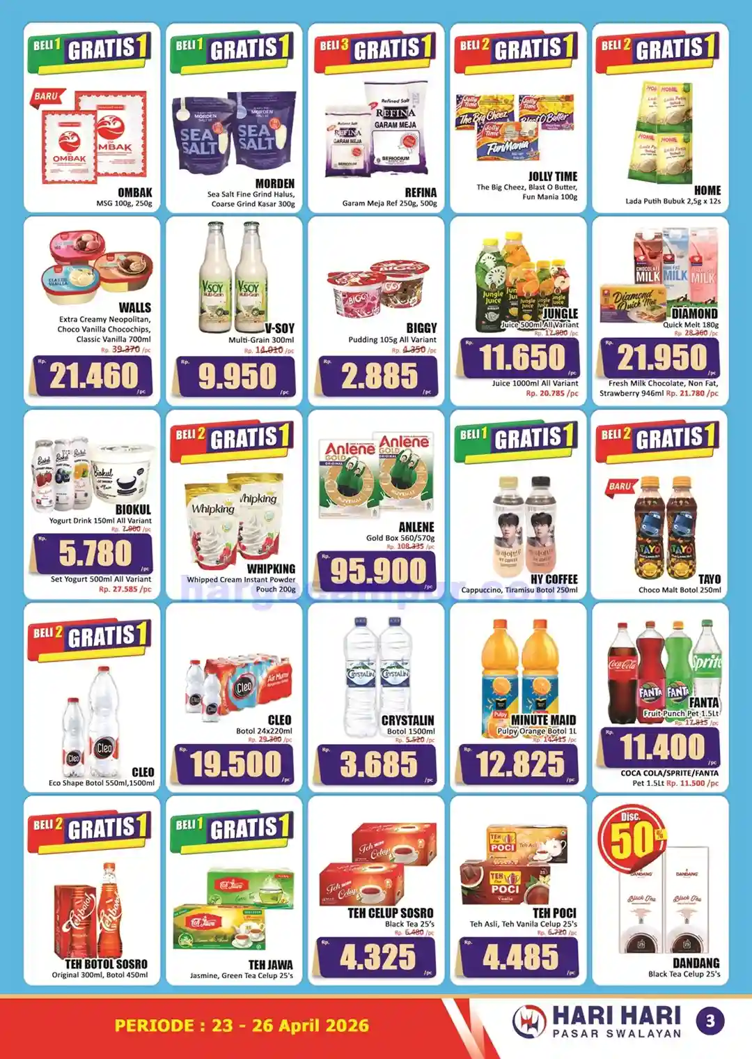 Katalog Promo KJSM Hari Hari Pasar Swalayan – Sebagai seseorang yang bertahun-tahun bertanggung jawab atas belanja rumah tangga, saya sudah terbiasa memantau katalog promo setiap akhir bulan. Salah satu yang paling saya tunggu-tunggu adalah promo KJSM (Kamis, Jumat, Sabtu, Minggu) dari Hari Hari Pasar Swalayan. Kali ini, periode 23 hingga 26 April 2026 hadir dengan penawaran yang lagi-lagi bikin saya tergoda untuk belanja lebih awal dari biasanya.