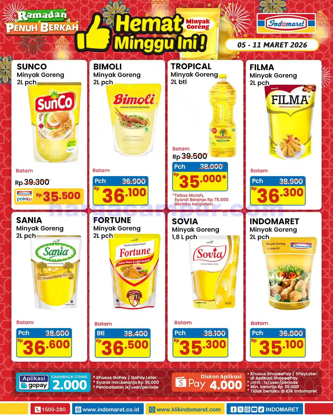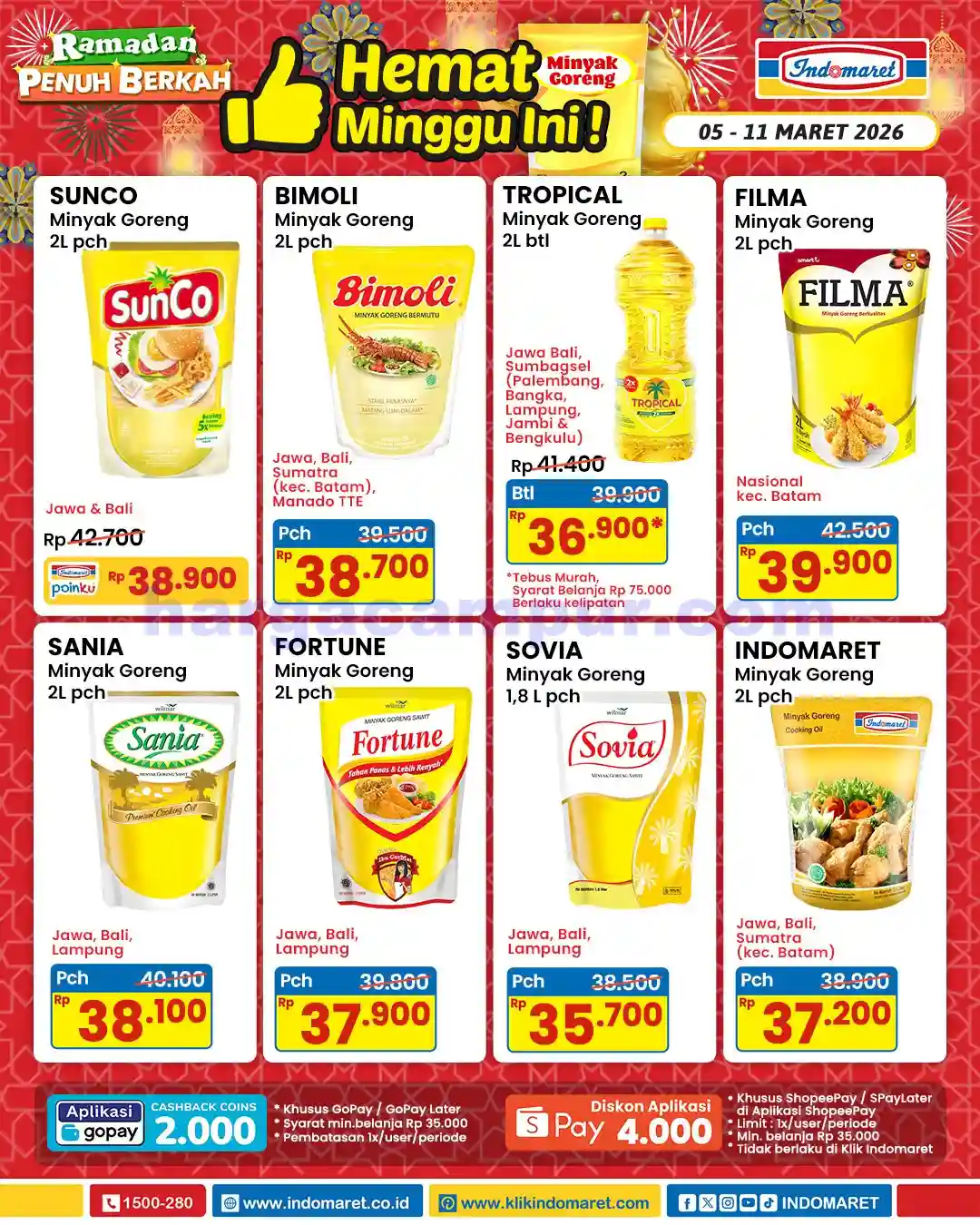 - Promo Khusus Pengguna GoPay: Jika membayar penuh dengan GoPay di Indomaret, pelanggan bisa mendapatkan harga spesial dengan syarat belanja minimal Rp35.000. Promo ini berlaku maksimal dua kali per pengguna selama periode berlangsung.