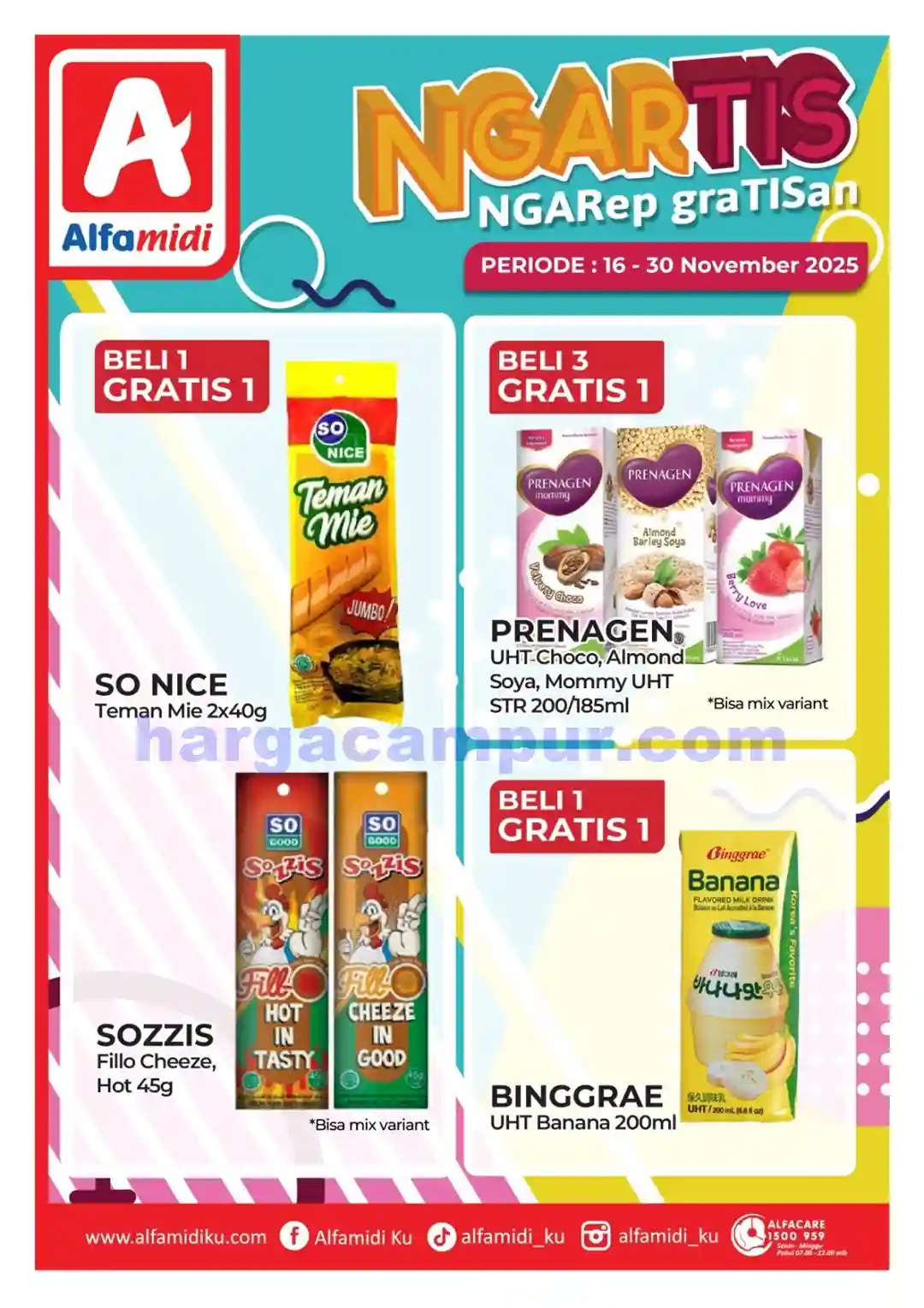 Promo Ngartis Alfamidi Ngarep Gratisan 16 – 30 November 2025 adalah kesempatan emas bagi konsumen untuk mendapatkan lebih banyak dengan harga yang sama. Dengan berbagai produk mulai dari makanan ringan, minuman, camilan, hingga kebutuhan rumah tangga, promo ini cocok untuk semua kalangan.