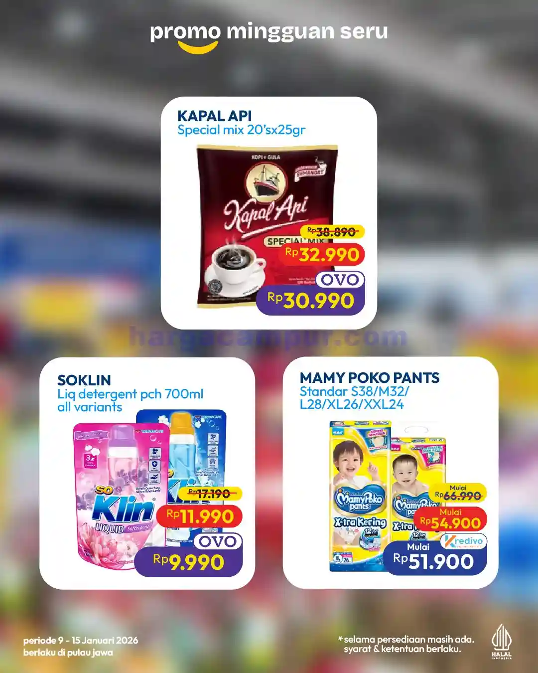Selama periode 9 – 11 Januari 2026, setiap transaksi belanja di Hypermart yang dibayar menggunakan OVO akan mendapatkan potongan harga hingga Rp 5.000. Diskon ini berlaku untuk berbagai jenis produk yang termasuk dalam daftar promo selama periode tersebut.