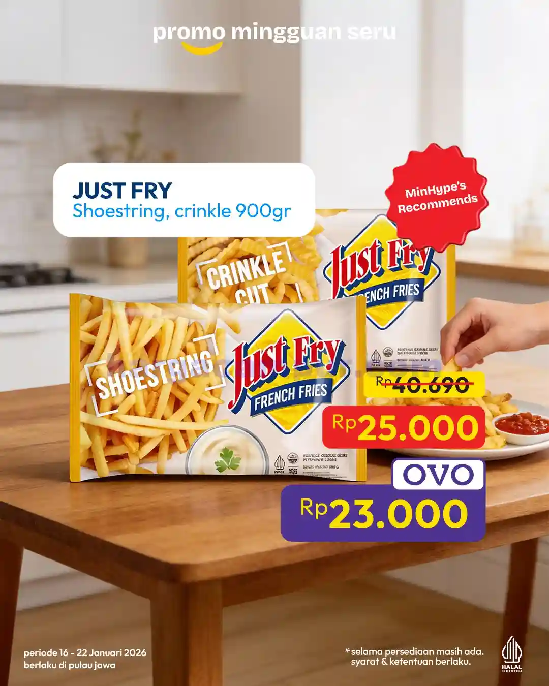 Selama periode 16 – 18 Januari 2026, setiap transaksi belanja di Hypermart yang dibayar menggunakan OVO akan mendapatkan potongan harga hingga Rp 5.000. Diskon ini berlaku untuk berbagai jenis produk yang termasuk dalam daftar promo selama periode tersebut.