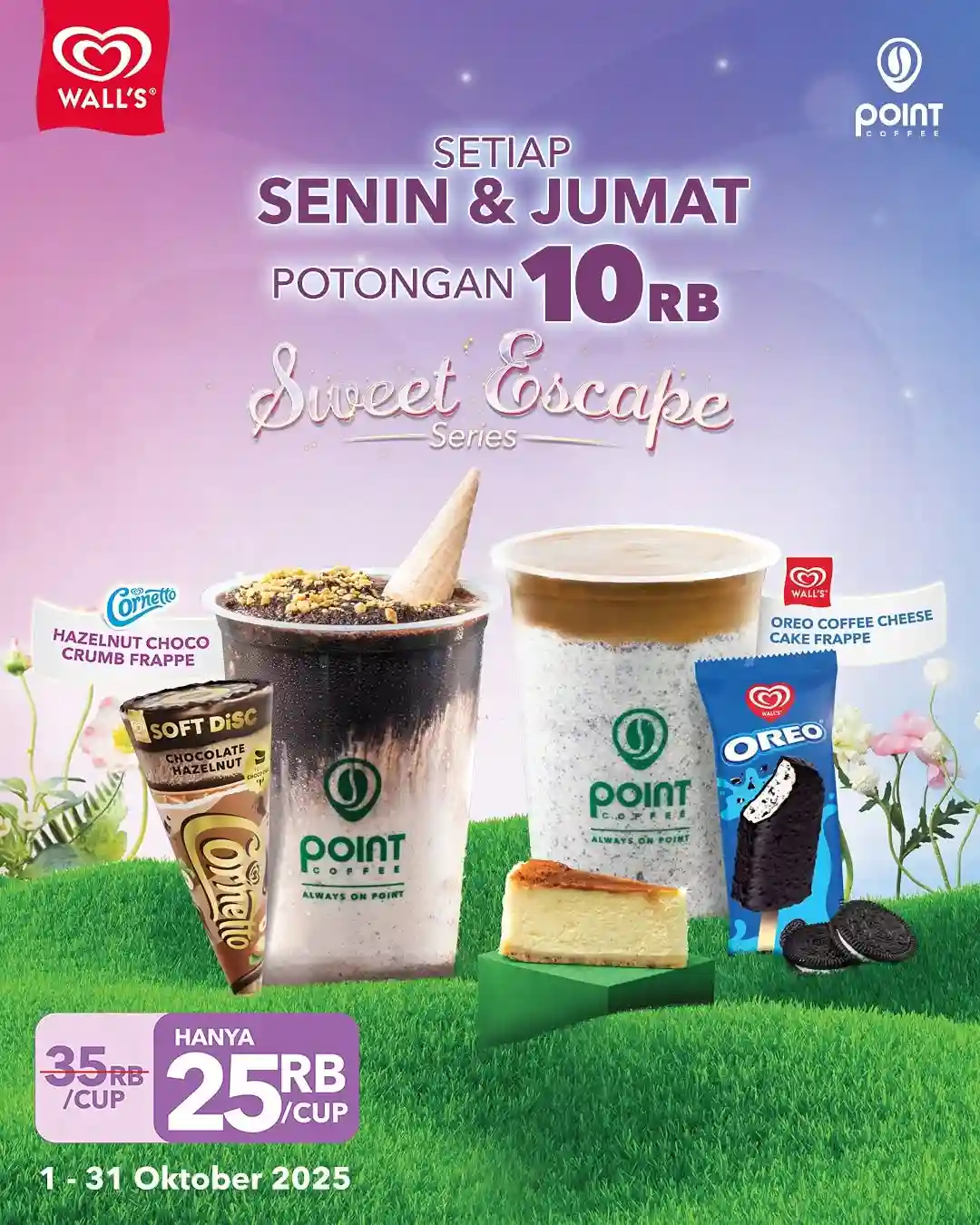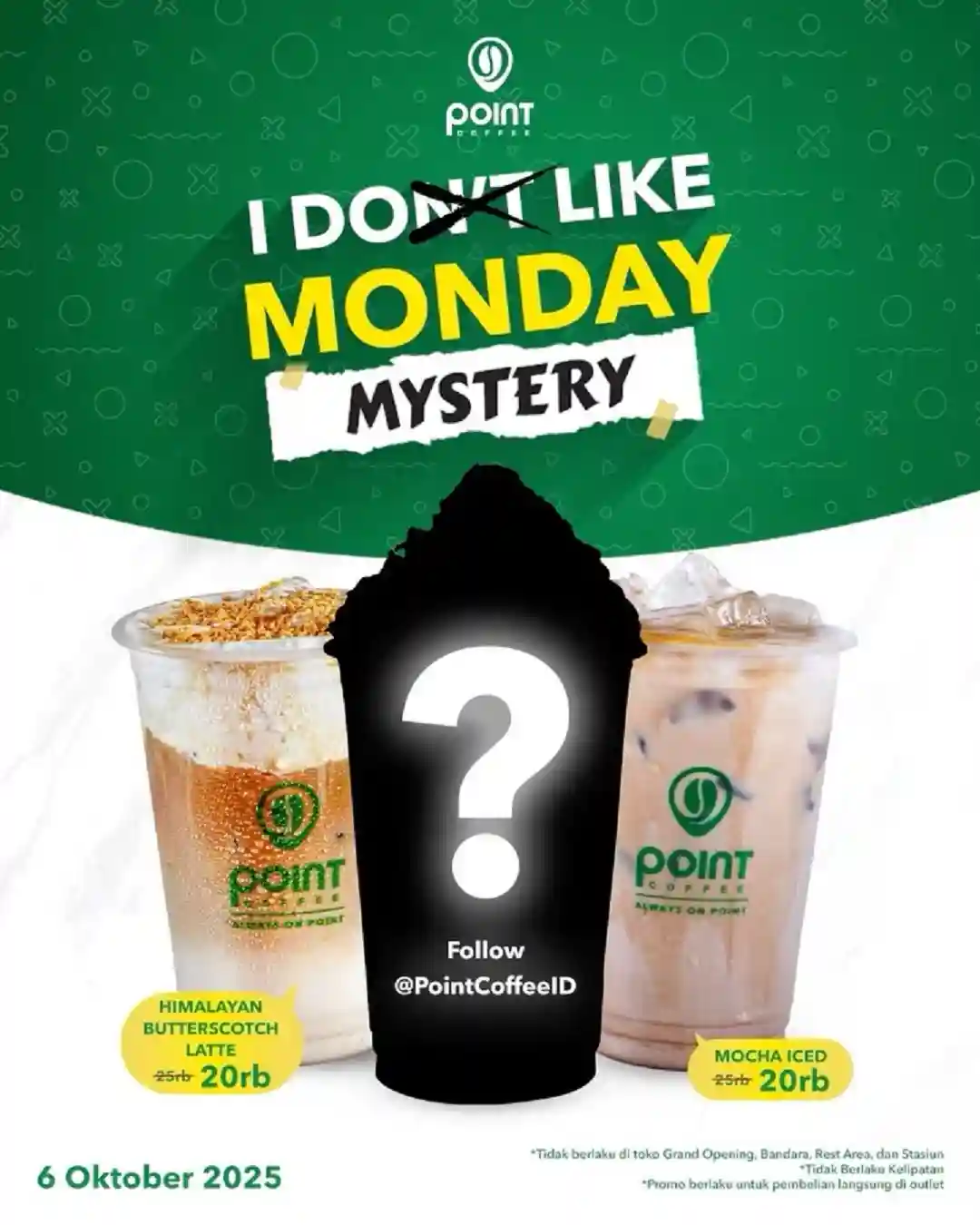 Salah satu highlight dari promo “I Like Monday” adalah hadirnya Mystery Frappe. Di setiap periode, Point Coffee menghadirkan varian Frappe dengan harga spesial hanya Rp18.000. Harga ini jauh lebih hemat dibandingkan harga normal yang biasanya berada di kisaran Rp25.000–Rp30.000.