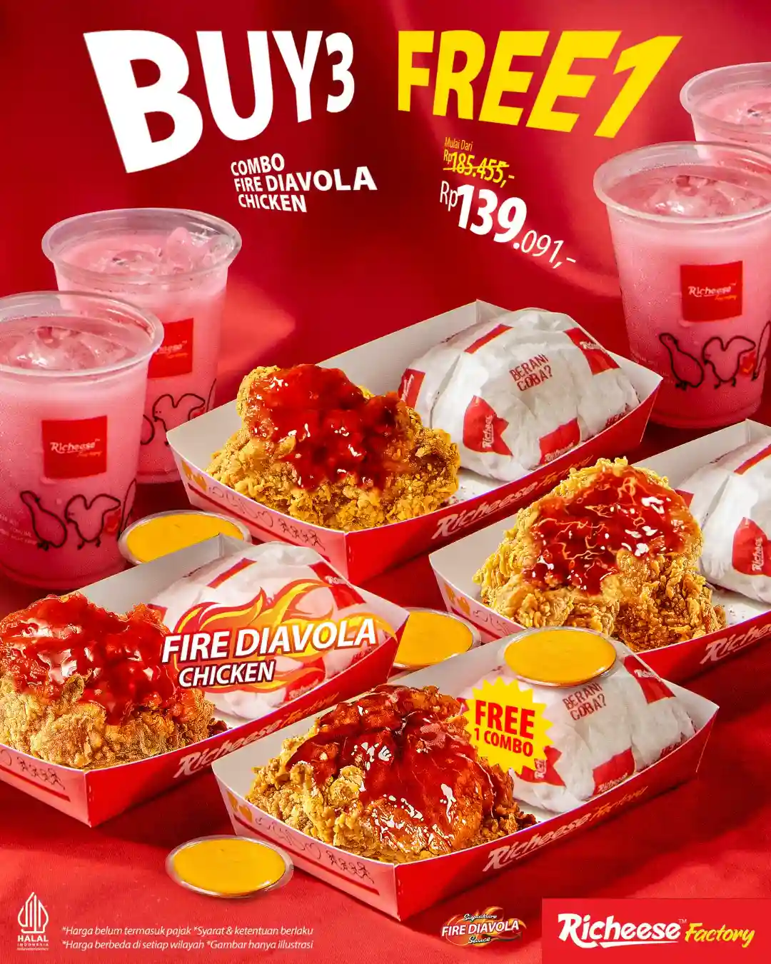 Promo Richeese Factory Buy 3 Get 1 Fire Diavola Chicken Mulai Rp139 Ribuan