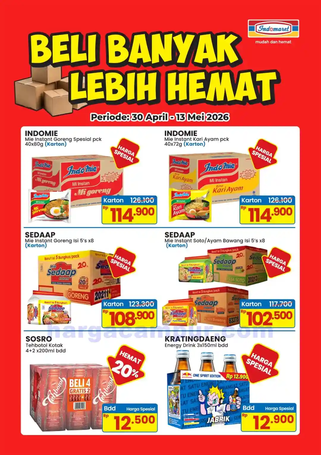 Berikut ini adalah katalog resmi dari promo “Beli Banyak Lebih Hemat” Indomaret yang berlaku dari 30 April hingga 13 Mei 2026: