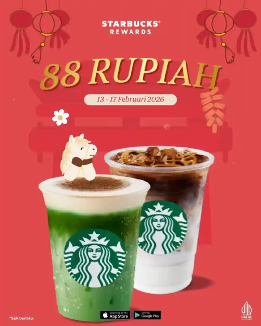 Starbucks Indonesia menghadirkan program Imlek Hoki berupa penawaran minuman kedua seharga Rp 88 bagi pelanggan selama periode 13–17 Februari 2026.